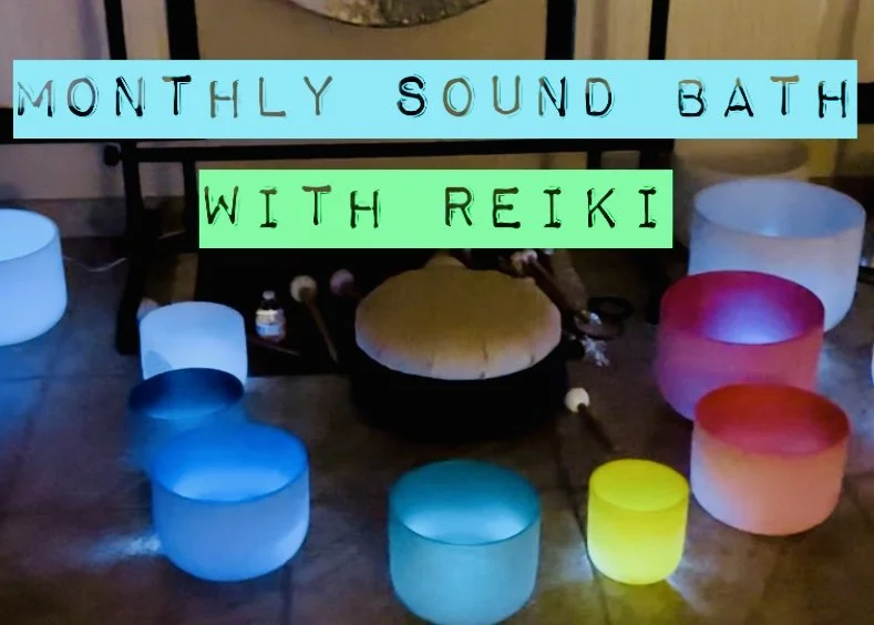 Come monthly to enjoy a relaxing sound bath on the first Thursday of every month and also receive individual Reiki healing from Reiki Master and Certified Sound Healer Bernadette.